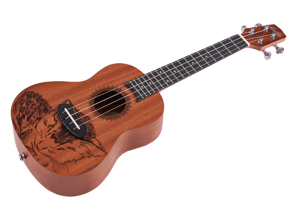Ukulele Koncertowe Laila UFG-2311-S CAT to świetny instrument dla osób, które szukają nie tylko ładnie brzmiącego instrumentu, ale także robiącego wrażenie wizualne. Plyta wierzchnia, boki i tył ukulele wykonane są z drewna sapele, które sprawia, że dźwięk jest pełny, ciemny i ciepły. Naturalny kolor drewnianych elementów pięknie komponuje się z laserowo wykonanym motywem kota. Również dookoła otworu rezonansowego wykonane są ozdoby. Pełny obraz instrumentu dopełnia ciemny gryf wykonany z drewna okume.
