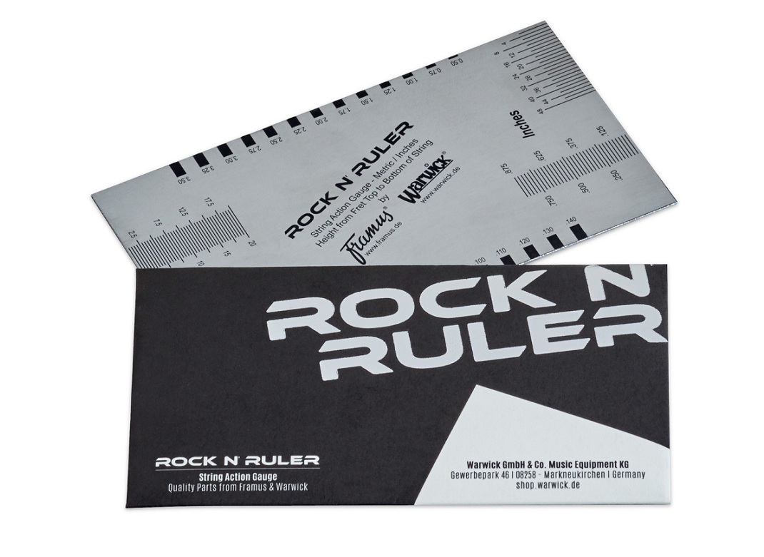 Kolejne bardzo fajne narzędzie od firmy Warwick. Właściwie taki "must-have" każdego gitarzysty/basisty który nie ma swojego technicznego czy kolegi lutnika. Ustawianie akcji strun z tym przymiarem to prawdziwa przyjemność. W końcu nie muszę się męczyć regulując wysokość na oko, czy przy użyciu modyfikowanej linijki. Narzędzie jest dosyć precyzyjnie wykonane, producent użył blachy nierdzewnej o grubości około 1mm na którą naniósł (prawdopodobnie laserem) kilka różnych skali milimetrowych i calowych oraz charakterystycznych markerów. Do tego jest też praktyczna ściągawka z przykładowymi ustawieniami, dzięki którym możemy sobie dowolnie wybrać punkt odniesienia podczas regulacji. Wszystko jest czytelne i wyraźne widać na jakim poziomie znajduje się regulowana struna. Dużą zaletą jest mały rozmiar narzędzia które w tej kwestii jest zbliżone do karty płatniczej, zapakowanej w praktyczne tekturowe etui. Ogólnie pełne zadowolenie z produktu i obsługi przez Guitar Center.