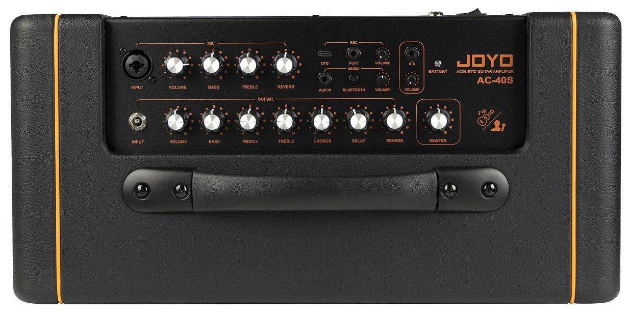 Wejścia i wyjścia: Joyo AC-40S to wzmacniacz, który imponuje wszechstronnością pod kątem łączności. Wyposażono go w Bluetooth, co pozwala na łatwe bezprzewodowe parowanie ze smartfonem, tabletem lub innym urządzeniem i odtwarzanie podkładów muzycznych wprost przez wzmacniacz. Dodatkowo do dyspozycji są klasyczne złącza: wejście MP3/liniowe, wejście AUX do mikrofonu oraz specjalne wejście mikrofonowe z oddzielnym reverbem. Sprzęt oferuje również standardowe porty: Jack 3,5 mm, Jack 6,3 mm oraz złącze Combo (XLR/Jack), które umożliwia podłączenie szerokiej gamy instrumentów i mikrofonów. Wzmacniacz posiada także wyjście słuchawkowe do cichego grania, wyjście AUX IN i USB, co rozszerza możliwości integracji z różnymi urządzeniami. Dzięki temu Joyo AC-40S świetnie sprawdza się zarówno w pracy solowej, jak i w duecie z innymi muzykami.