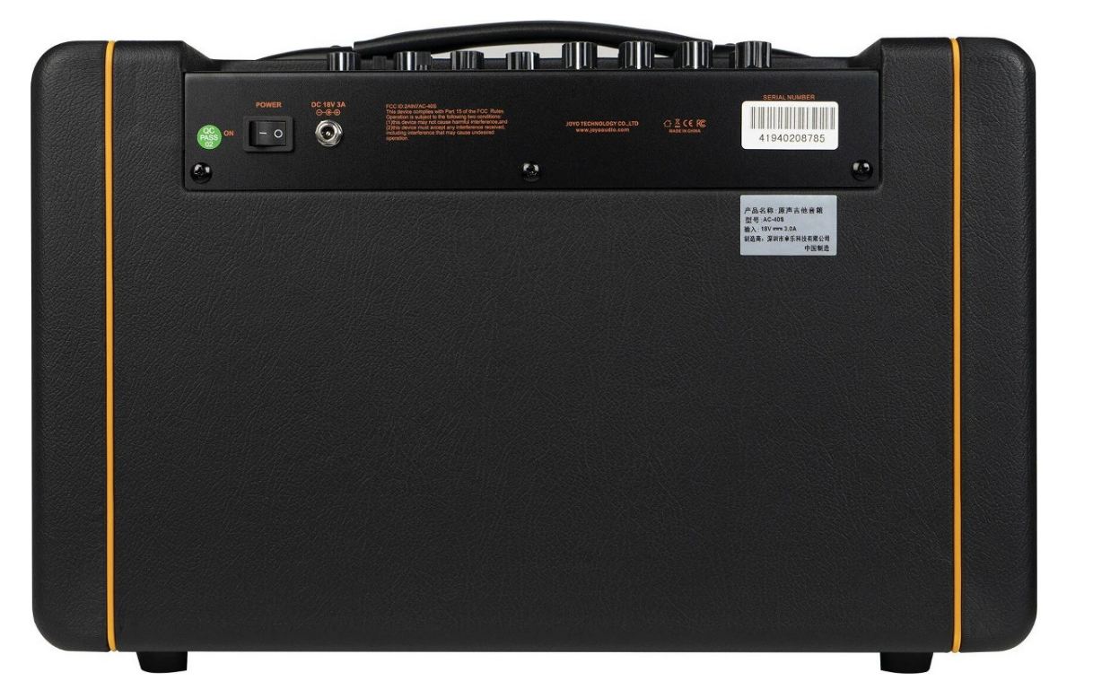 Zasilanie i bateria: Jedną z największych zalet Joyo AC-40S jest elastyczność w kwestii zasilania. Wzmacniacz oferuje moc 40 W RMS @ 4Ω/1kHz, co zapewnia odpowiednią głośność i zapas mocy do różnych zastosowań – od ćwiczeń, przez jam sessions, aż po małe koncerty. Urządzenie może być zasilane bezpośrednio z sieci (AC 100V–250V, 50–60Hz), ale wbudowany akumulator umożliwia także pracę w trybie mobilnym. Akumulator pozwala na około 6 godzin ciągłego grania bez konieczności podłączenia do prądu, co daje swobodę występowania w plenerze, na ulicy czy w miejscach, gdzie dostęp do gniazdka jest ograniczony. Możliwość pracy zarówno z sieci, jak i na baterii czyni Joyo AC-40S niezwykle uniwersalnym sprzętem.