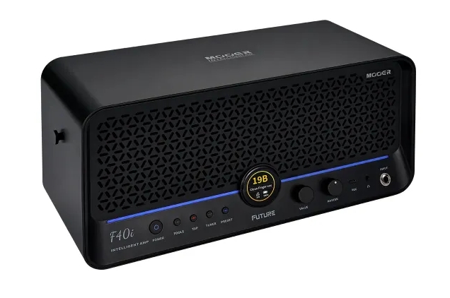 Sterowanie i interfejs: F40i Li Phantom Black został wyposażony w intuicyjny, okrągły ekran dotykowy o przekątnej 1,28 cala, który umożliwia szybkie i wygodne zmiany presetów oraz dostęp do wbudowanego tunera bezpośrednio z poziomu urządzenia. Użytkownik ma pełną kontrolę nad parametrami dźwięku dzięki przejrzystym kontrolkom Value i Master, a dedykowana aplikacja iAMP pozwala na kompleksową edycję efektów, aktualizację oprogramowania oraz pobieranie i przesyłanie presetów z chmury MOOER Cloud. Dodatkowo, wbudowany AI Tone Advisor wspomaga tworzenie indywidualnych brzmień, automatycznie dobierając parametry efektów i wzmacniaczy, co znacząco usprawnia proces konfiguracji i personalizacji dźwięku.
