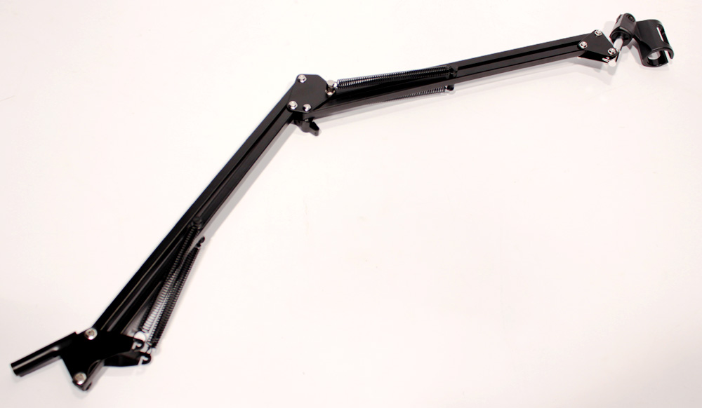 Stabilny wysięgnik mikrofonowy, który może być użyty jako przedłużenie statywu lub samodzielnie działające urządzenie np w studio lub na scenie. Daje dużo możliwości ustawienia mikrofonu co niewątpliwie wpływa na komfort pracy w różnych warunkach. Zakończony uchwytem mikrofonowym.