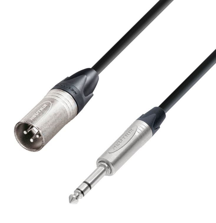 - Symetryczny kabel z męską wtyczką XLR i jack stereo 6,3 mm – wszystkie komponenty firmy NEUTRIK © – zaprojektowany i wyprodukowany w Europie