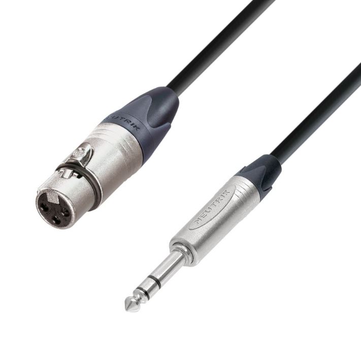 - Symetryczny kabel wyposażony w żeńskie złącze wtyczkowe XLR i wtyczkę jack stereo 6,3 mm