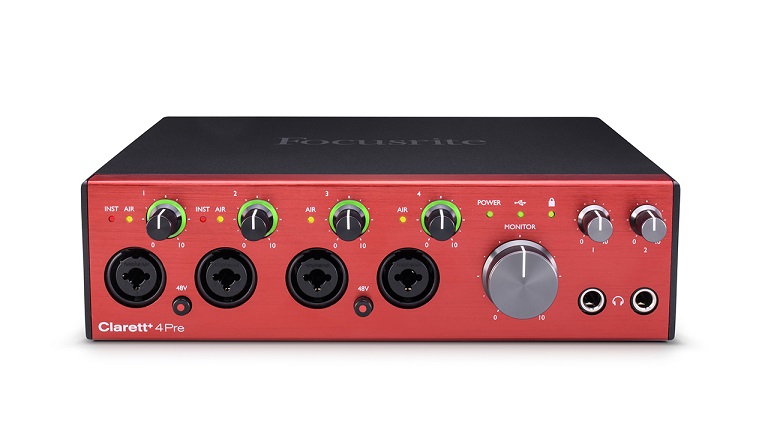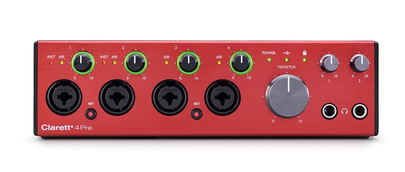 - Cztery profesjonalne całkowicie analogowe przedwzmacniacze mikrofonowe Clarett+ AIR z przełączaniem impedancji i kontrolą przekaźnika.