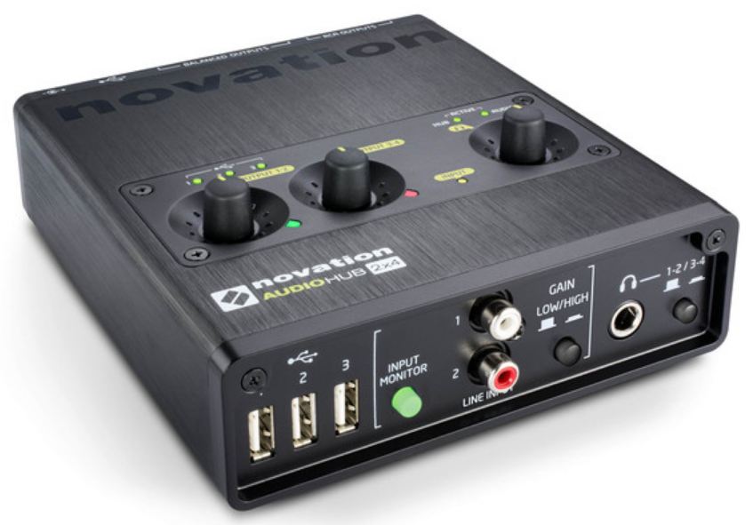 Trwałość i ergonomia: Interfejs Novation Audiohub 2x4 został zaprojektowany z myślą o intensywnym użytkowaniu zarówno w studiu, jak i podczas występów na żywo. Kompaktowa i solidna obudowa z aluminium zapewnia wytrzymałość i odporność na uszkodzenia mechaniczne, co czyni go doskonałym wyborem dla mobilnych producentów i DJ-ów. Dzięki solidnej i niezawodnej konstrukcji, urządzenie spełnia wymagania profesjonalistów, którzy potrzebują sprzętu odpornego na intensywną eksploatację. Konstrukcja odporna na trudy transportu i użytkowania podczas koncertów sprawia, że Audiohub 2x4 świetnie sprawdza się w trasie koncertowej. Wszystkie kontrolki umieszczone na górnym panelu zapewniają łatwy dostęp do regulacji głośności i statusu urządzenia, nawet w ciemnych warunkach scenicznych, co zwiększa komfort użytkowania podczas występów na żywo.