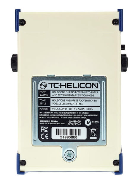Wysokiej jakości procesor wokalny marki TC Helicon. Urządzenie oferujące najwyższej klasy pogłos oraz osobistego realizatora Adaptive Tone. Zapewnia taże możliwość wyboru osmiu stylów harmonii, wszystkie sterowane dźwiękami gitary.